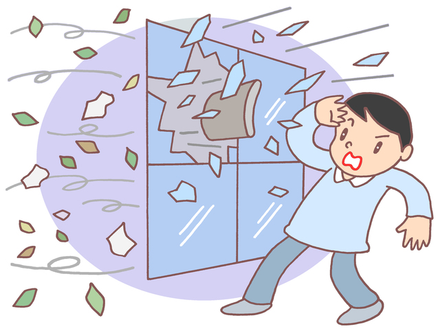 なかでも、瓦や木片、石などの重いものが飛んでくる可能性のある強風の場合は窓ガラスにヒビが入ったり割れてしまうリスクが高まるため注意が必要です。