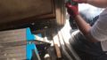 2.2本の冷えたロールを通す事でガラスを板状にすると伴にガラスの片面に模様を施します。
