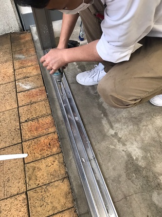 引き戸の動きが悪いので見て欲しいとのご依頼を頂きました。現場に伺ってみるとそこは商店街にある店舗で、店主と思しき方が「この入口の引き戸が重くって・・・修理出来ますか?」との事。状態を確認してみると、戸車の劣化は勿論の事、サッシレールもガタガタになっていて仮に戸車のみ交換した場合、恐らくレールのガタガタが影響してすぐに戸車が悪くなるのでは?とレールの取替も必要と判断しました。